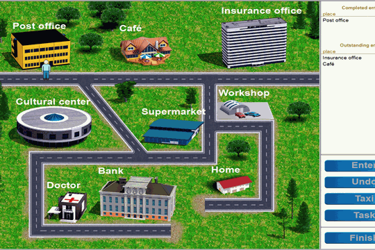 A PLAND (Plan a Day) képzési programban az ügyfél azt a feladatot kapja, hogy döntse el, milyen sorrendben végezze el a napi tevékenységeket. A kiindulópont az elvégzendő dolgok listája és egy virtuális utcaterv, amelyen a különböző épületek és a megrendelő aktuális helyzete be van jelölve. A tervezési feladattal összhangban a megrendelőnek stratégiát kell kidolgoznia annak eldöntésére, hogy a feladat különböző összetevői milyen sorrendben történjenek, és milyen sorrendben kerüljön sor az épületek látogatására.