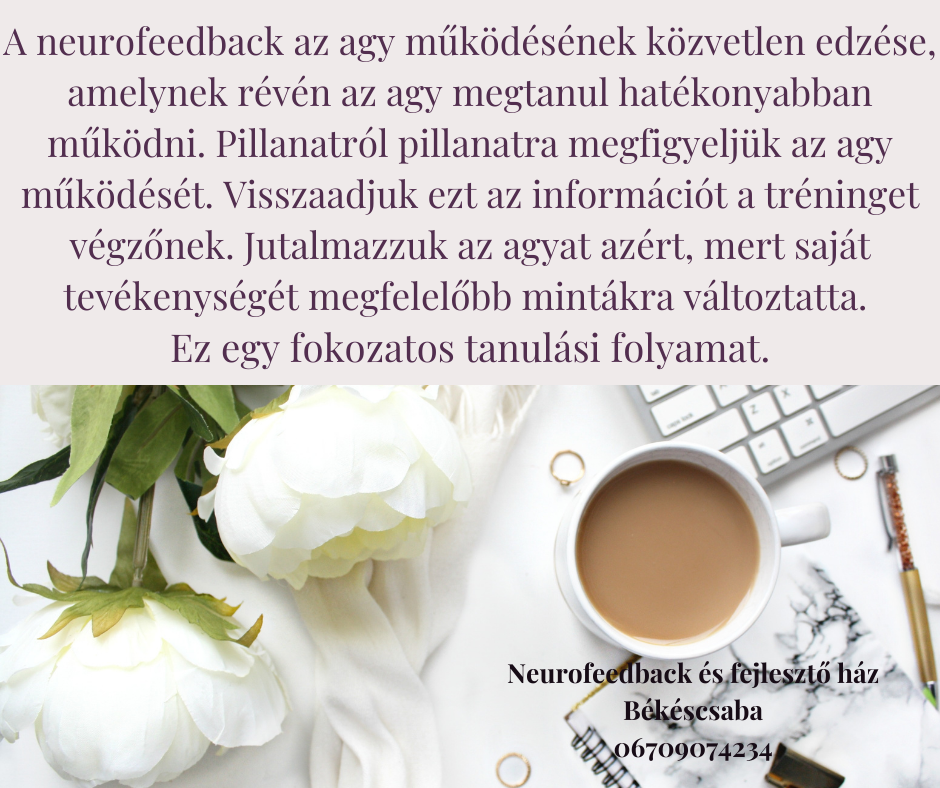 A neurofeedback tréning egy speciális informatikai eszközökkel támogatott hatékony tanulási segédeszköz, aktív tanulásra és önfejlesztésre épülő tréning. Teljesen non-invazív gyógymód, a neurofeedback kezelés során az agyba nem vezetünk semmilyen elektromos jelet, áramot. A fejre illesztett szenzorokkal csak az agy saját elektromos jeleit érzékeljük, ezt használjuk visszajelzés, tanulás, az agy működésének optimalizálása céljából. A neurofeedback tréning az agyműködés optimális hangolását jelenti, az agy saját elektromos jeleinek a felhasználásával. A fejbőrre és a fülcimpákra helyezett elektródák mérik az agyhullámokat.